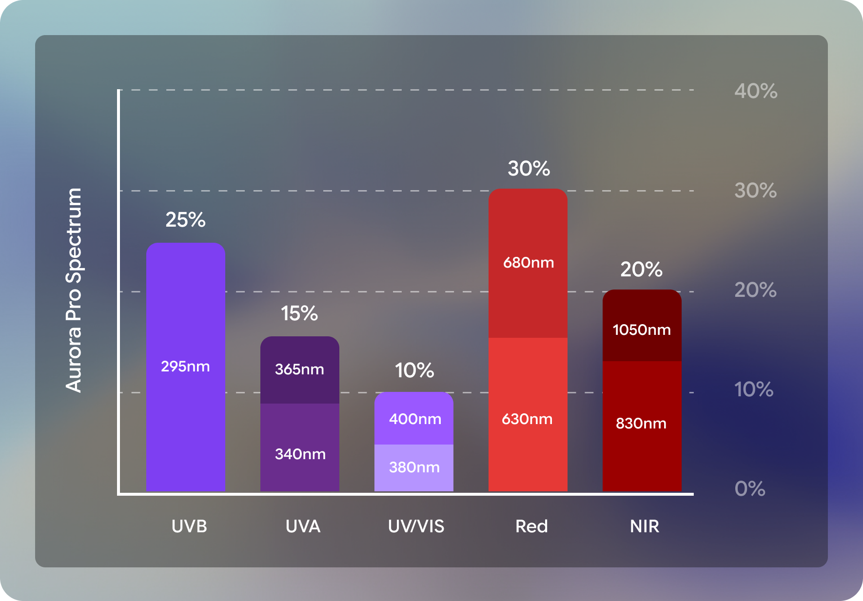Sunlight has always delivered UV, red, and near-infrared together — your body evolved to receive them that way. Red light mitigates UV's oxidative stress. UV enhances what red light supports. Most panels give you one or the other. Aurora Pro delivers all three, the way nature intended.